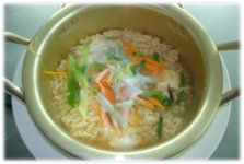 Les célèbres nouilles frisées coréennes, au choix épicées ou pas.